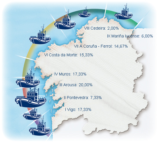 | Zona III - Arousa | 30 | 7,14% | 20,00% | 1,08% | 1.405 | 2,84% | 6.329 | 2,43% |