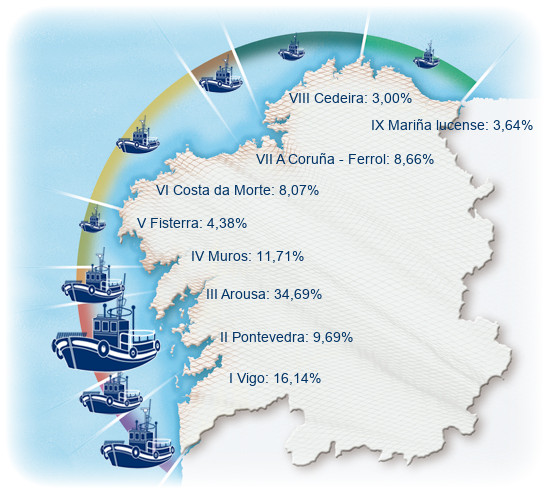 | Zona VI - Costa da Morte | 164 | -2,38% | 8,07% | -0,15% | 894 | -0,51% | 7.157 | -0,98% |