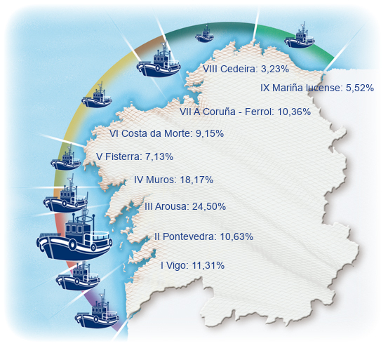 | Zona VI - Costa da Morte | 68 | -2,86% | 9,15% | -0,19% | 580 | -1,32% | 3.762 | -1,70% |