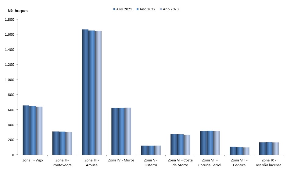 | Zona III - Arousa | 1.643 | -6 | 6,71 | 0,03 | 8,76 | 0,33 | 42,66 | 1,37 |
