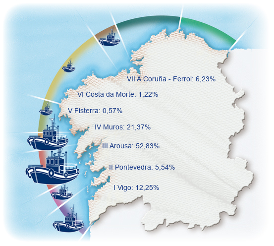 | Zona III - Arousa | 1.298 | -1,29% | 52,83% | -0,13% | 1.676 | -7,74% | 32.513 | -1,20% |