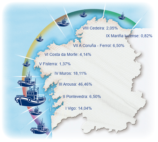 | Zona VI - Costa da Morte | 121 | -0,82% | 4,14% | 0,01% | 221 | -1,80% | 3.493 | -1,85% |