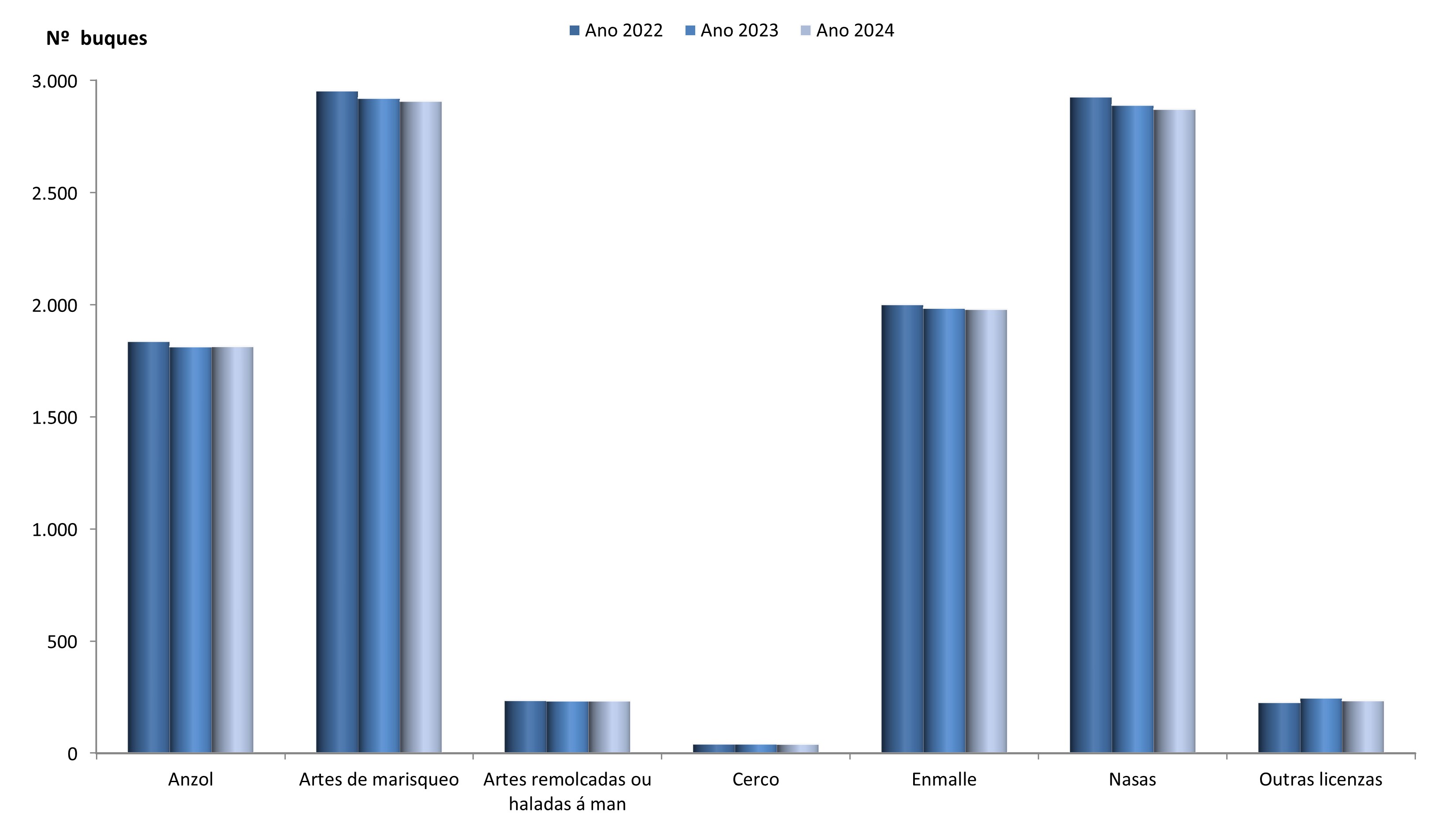 | Artes remolcadas ou haladas á man | 234 | 0 | 7,54 | -0,22 | 2,85 | 0,03 | 28,44 | -0,03 |