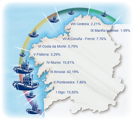 | Zona VIII - Cedeira | 82 | -1,20% | 2,21% | -0,01% | 208 | -0,91% | 2.466 | -2,22% |