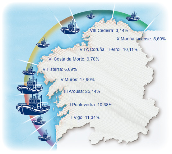 | Zona VI - Costa da Morte | 71 | 5,97% | 9,70% | 0,60% | 608 | 3,53% | 4.093 | 8,92% |