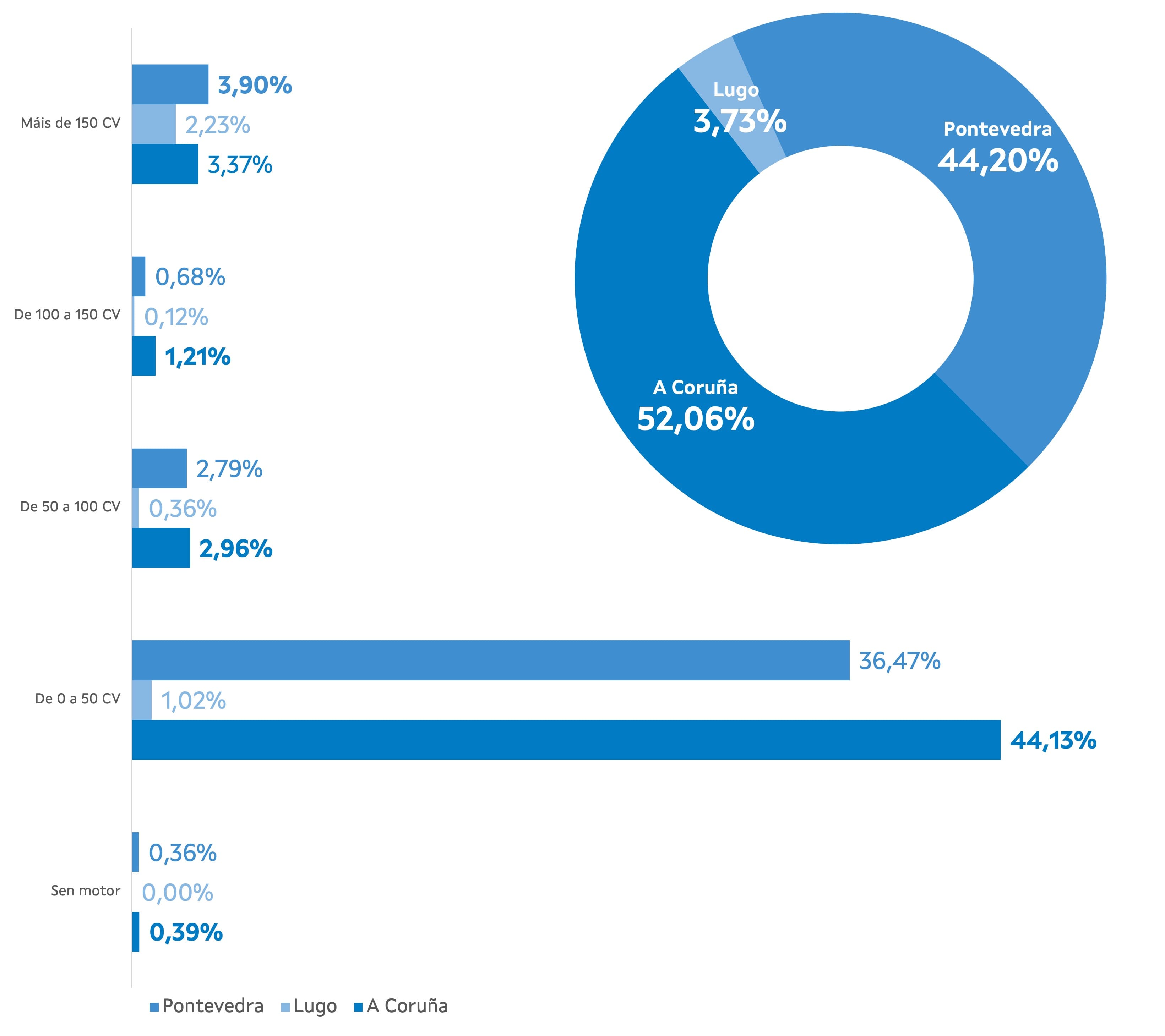 | Sen motor | De 0 a 50 CV | De 50 a 100 CV | De 100 a 150 CV | Máis de 150 CV | Total | ||||||||