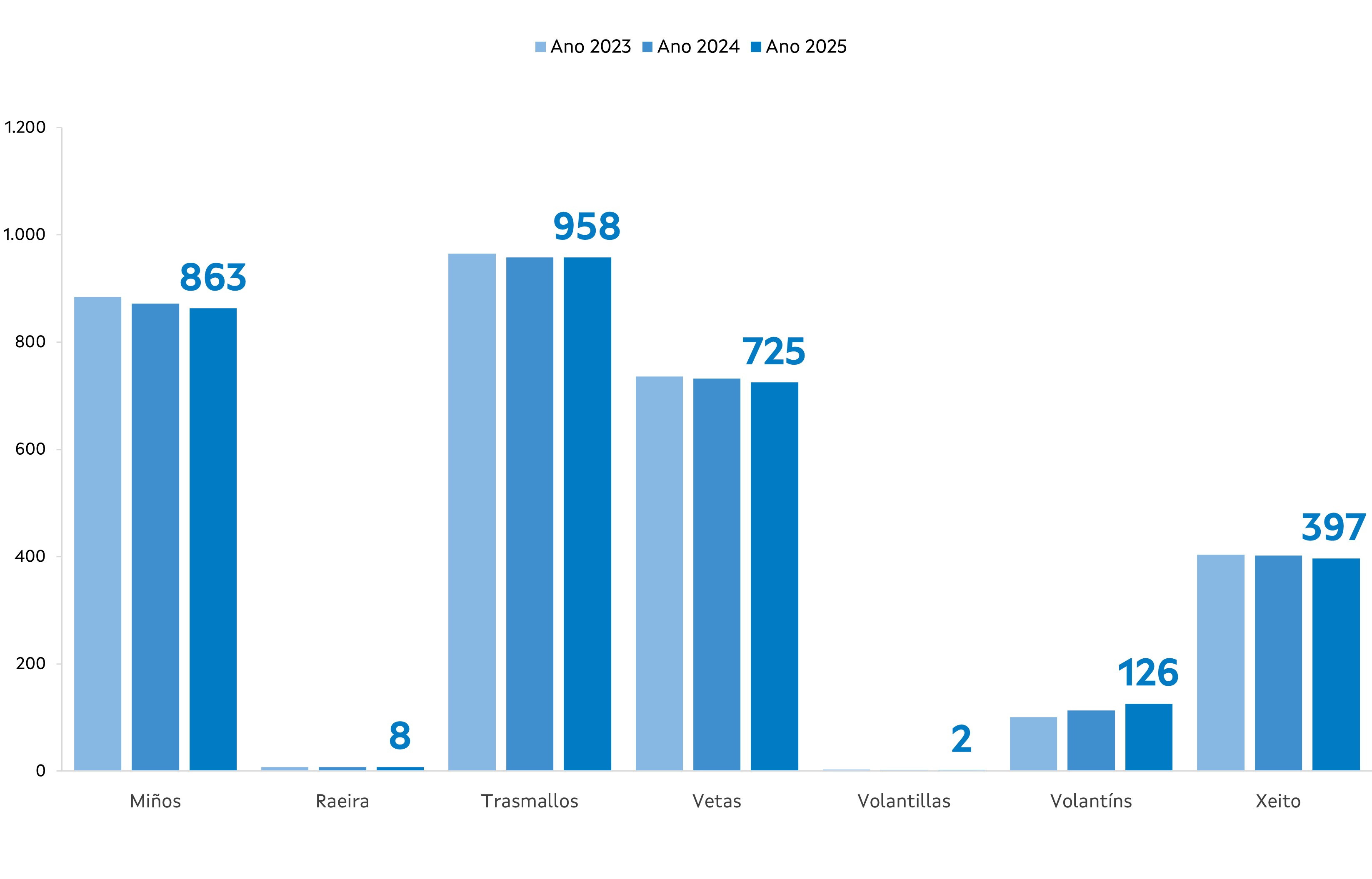 | Miños | 863 | -9 | 8,65 | -0,02 | 5,10 | 0,00 | 45,18 | -0,16 |