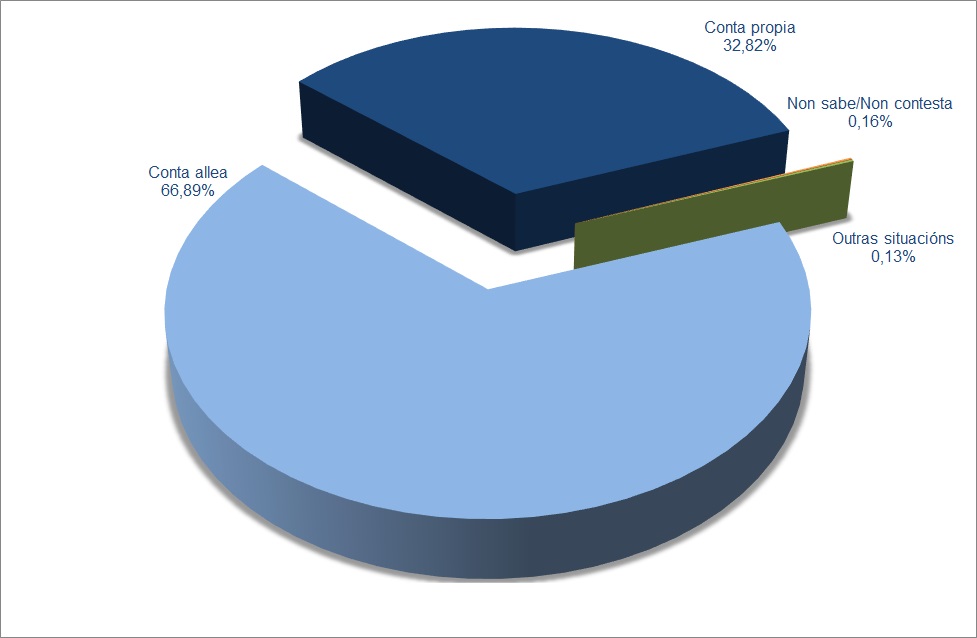 | Conta propia | 3.468 | 40,99% | 7 | 0,62% | 15 | 1,41% | 3.490 | 32,82% |