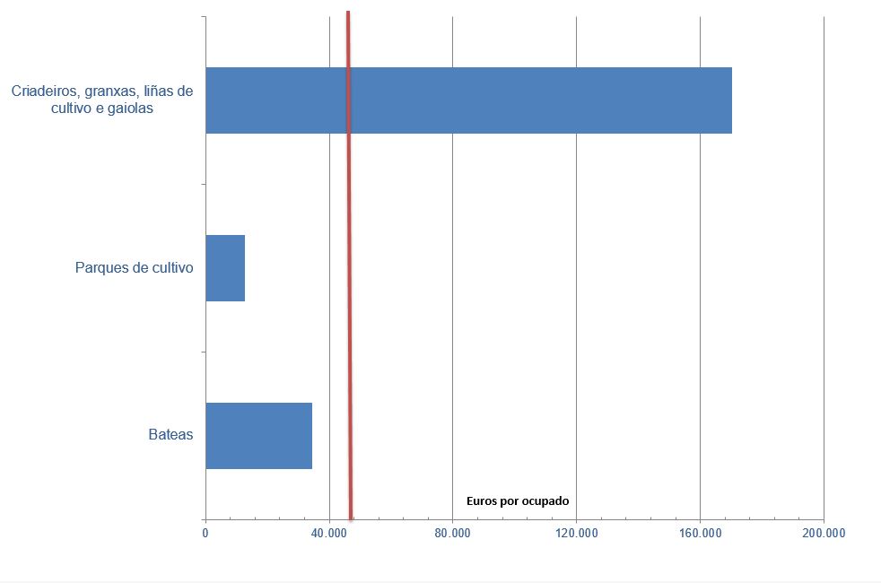 | Criadeiros, granxas, liñas de cultivo e gaiolas | 114.699 | 44,63% | 673 | 12,87% | 170.366 |