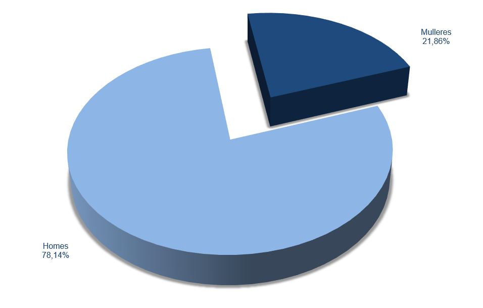 | Mulleres | 712 | 17,63% | 300 | 37,45% | 217 | 27,75% | 1.229 | 21,86% |