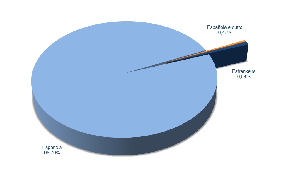| Española e outra | 25 | 0,65% | 0 | 0,00% | 0 | 0,00% | 25 | 0,46% |
