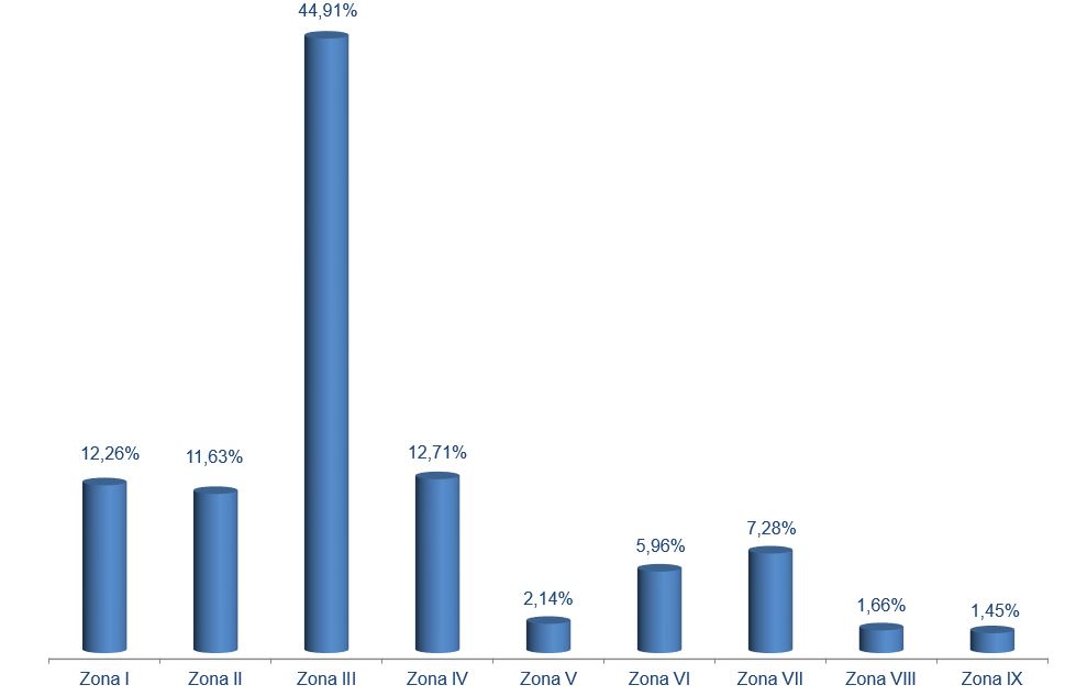 | Zona III - Arousa | 1.703 | 44,91% | ||||||